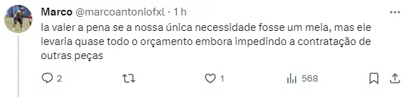 A fonte ainda revelou que o time de La Plata quer algo em torno de 10 milhões de euros por 50% dos direitos do atleta, o que está fora dos padrões do clube mineiro.