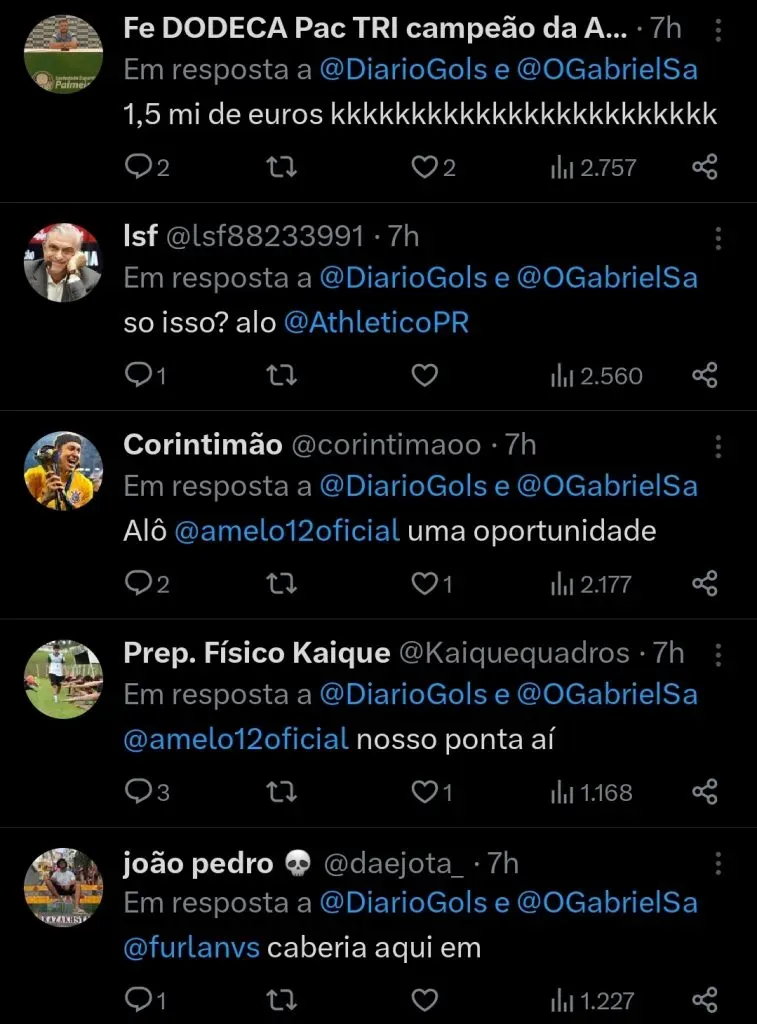 Há alguns dias, o jornalista Gabriel Sá, especializado em notícias do São Paulo, trouxe a informação de que o time fez uma proposta de 1 milhão de euros (R$ 5,3 milhões) pelo atacante.