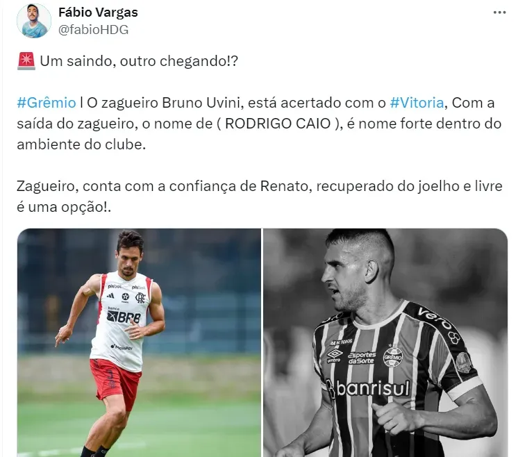 Rodrigo Caio viveu seu auge no Flamengo, mas sofreu com várias lesões. Seu melhor momento foi em 2019, primeira temporada no Rio de Janeiro. Após isso, o defensor nunca mais conseguiu sequência, o que poderia pesar contra sua chegada ao Sul. Toda essa situação, certamente, será analisa antes de um acordo final.