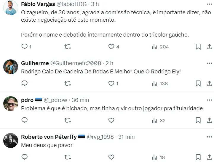 A informação do interesse gremista é passada por Fábio Vargas, setorista do clube. Segundo a fonte, o defensor está recuperado de um problema no joelho e teria a confiança de Renato Gaúcho. No momento, é bom frisar que não há negociações ocorrendo.