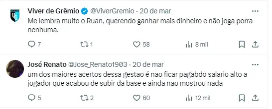 O lateral tem um acordo encaminhado para prorrogar seu vínculo até 2025. Porém, ainda assim, a tendência é que ele não continue no Clube Gaúcho. Isso porque não há uma expectativa que ele seja utilizado por Renato.