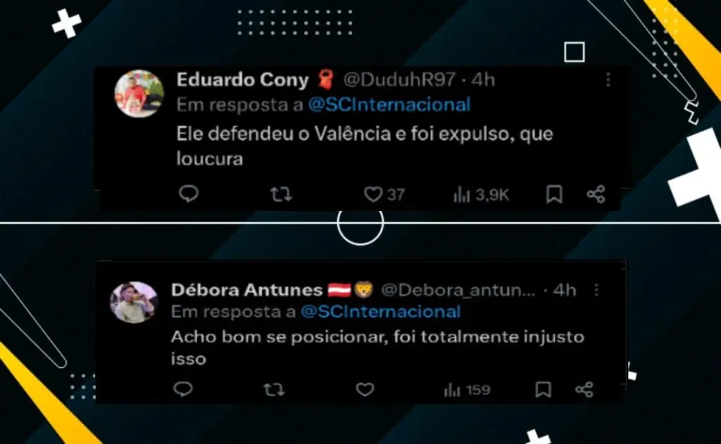 “Foi uma atitude bem infeliz. Os jogadores do Juventude estavam tentando ajudar o jogador do Valencia e ficaram com um a menos no jogo. Não é justo, isso não é arbitrar. Esse tipo de lance retrata muito bem o momento da arbitragem brasileira. É muito bem preparado fisicamente, tecnicamente, estudam cada vírgula da regra. E o que está faltando? O bom senso. É um lance emblemático”, completou.