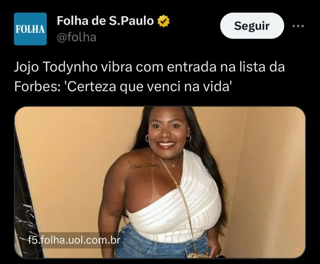 A cantora e influenciadora Jojo Todynho teve uma grande surpresa ao se deparar com a lista ‘Under 30’ da Forbes.