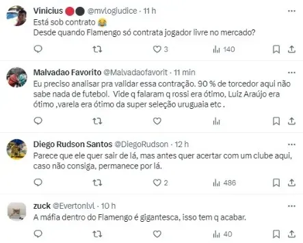 De acordo com o jornalista Léo José, a situação vem sendo recorrente: “Já foi oferecido por 7 agentes distintos, mas está sob contrato inclusive. Flamengo não negocia com ele não”, disse o comunicador.