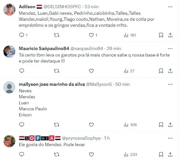 “O técnico Rogério Ceni pediu ao SPFC que informasse quais atletas estariam efetivamente liberados para negociar sem inflacionar ou criar um problema no grupo e no clube. Tentando fazer o melhor para o clube sem criar atritos, ele busca informações”, diz o Blog.