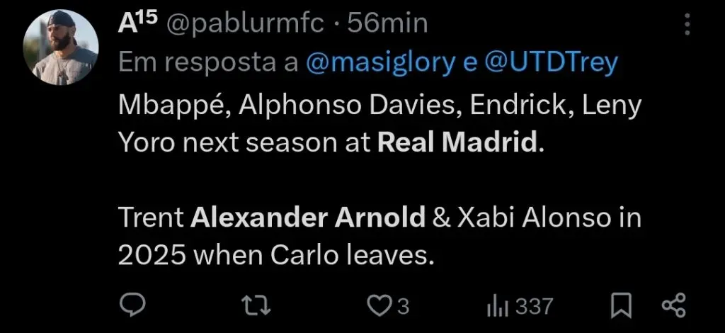 Não obstante, ciente da importância de Trent, os Reds já definiram que não estão dispostos a negociar nenhum valor e exigem 75 milhões de libras (R$ 474 milhões).