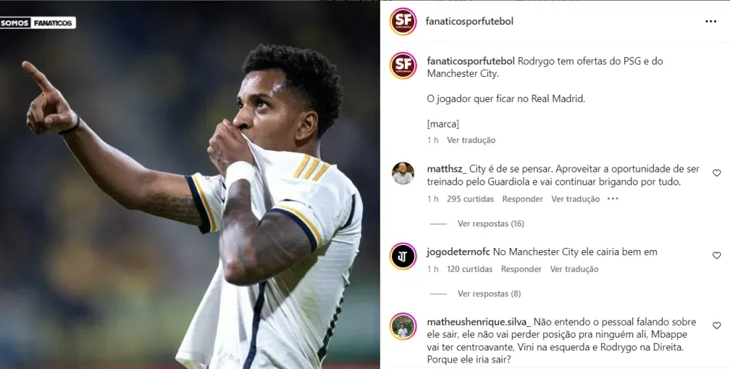 A prioridade total de Rodrygo é ficar no Real Madrid para a próxima temporada. Além do Liverpool, ele tem ofertas oficiais de PSG e Manchester City, mas deixar a Espanha, neste momento, não está nos planos.