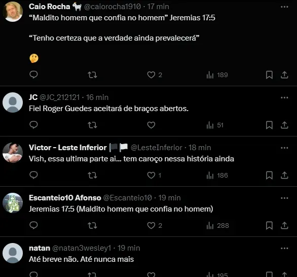 Alguns torcedores do Corinthians ressaltaram que no final do agradecimento, Lucas Veríssimo utilizou um versículo da Bíblia que diz: “Maldito homem que confia no homem”.