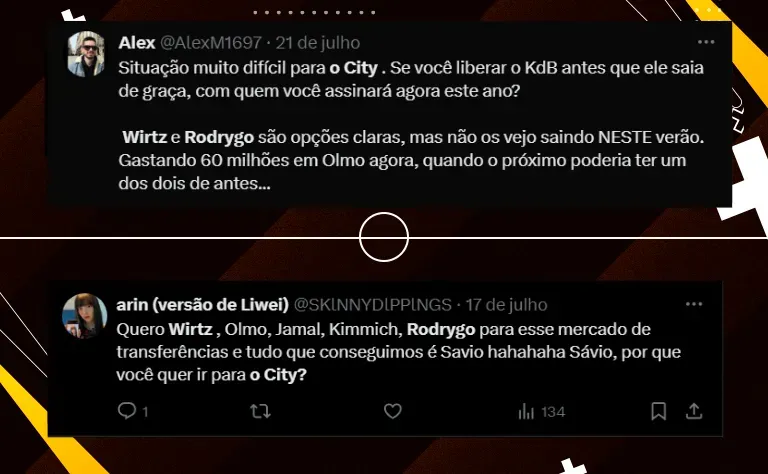 Isso porque Julian Alvarez deve deixar o Eithad Stadium, em função da concorrência com Erling Haaland. Caso aconteça, o City estuda investir 200 milhões de euros (R$ 1,25 bilhão) em dois craques.