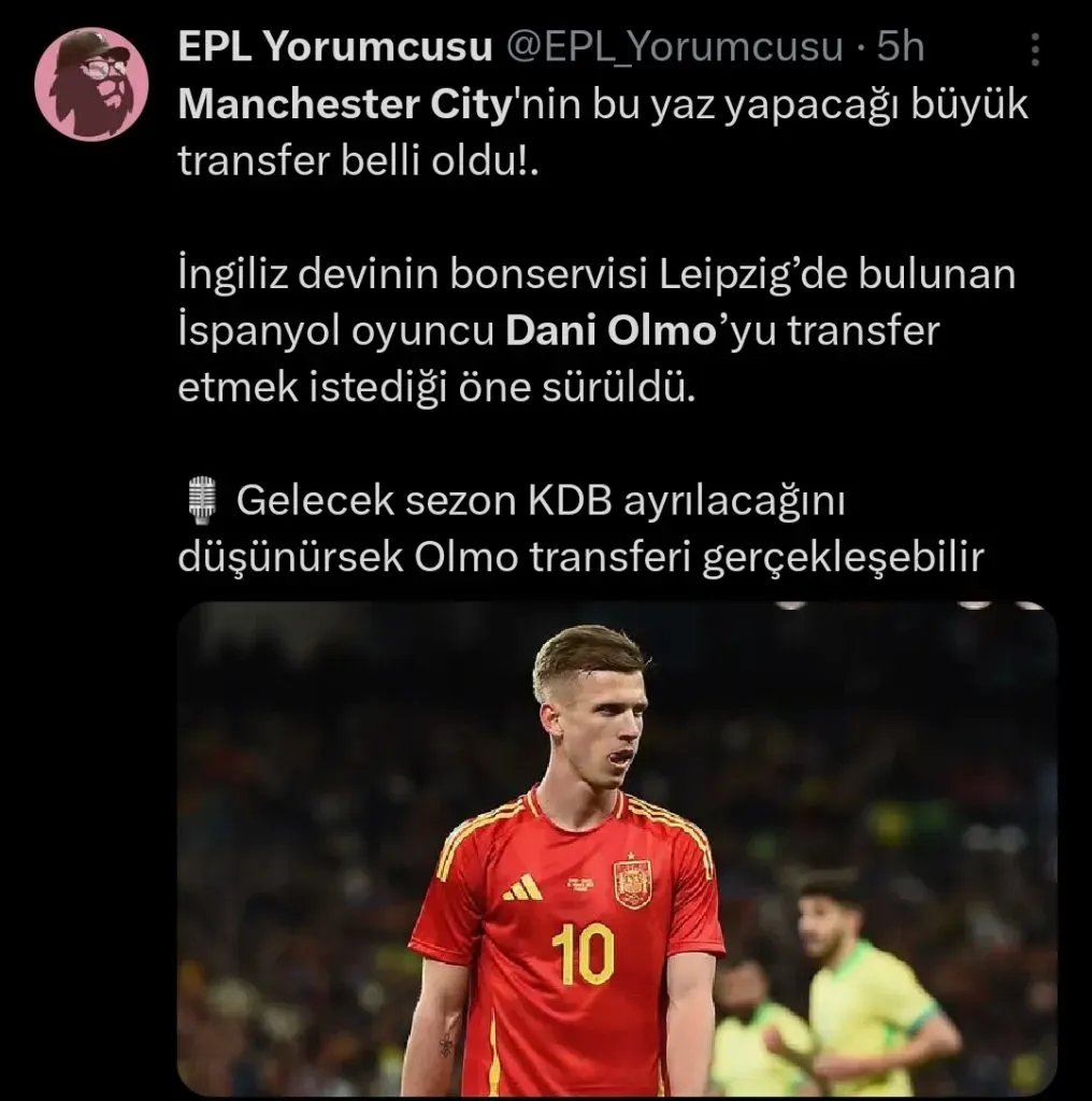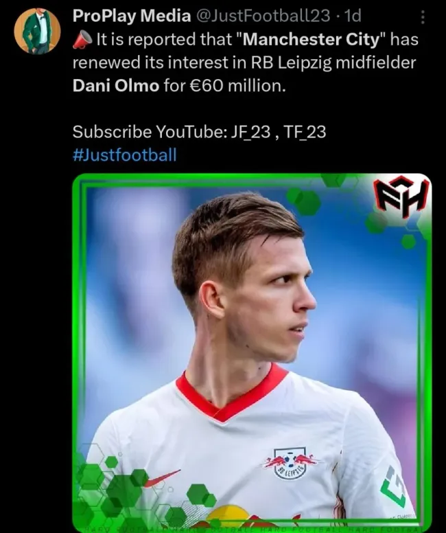 Um deles, é o do espanhol Dani Olmo, que atualmente joga pelo RB Leipzig e está disputando essa edição da Eurocopa pela Espanha. O interesse dos Sky Blues é tanto que até mesmo o pagamento da multa rescisória pode acontecer.