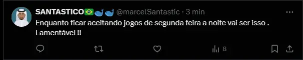 “Nós tínhamos uma partida em Santos, também com uma certa restrição com referência a uma parte da arquibancada e, com isso, nós teríamos uma dificuldade no sentido da arrecadação dessa partida“, disse o atual presidente do Santos ao ‘De Olho no Peixe‘.
