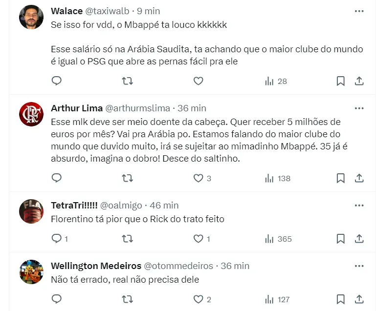 A fonte ainda informa que Mbappé pediu um salário de 70 milhões de euros anuais para jogar em Madrid. O clube merengue já está ciente, mas tenta reduzir o valor para 35 milhões.