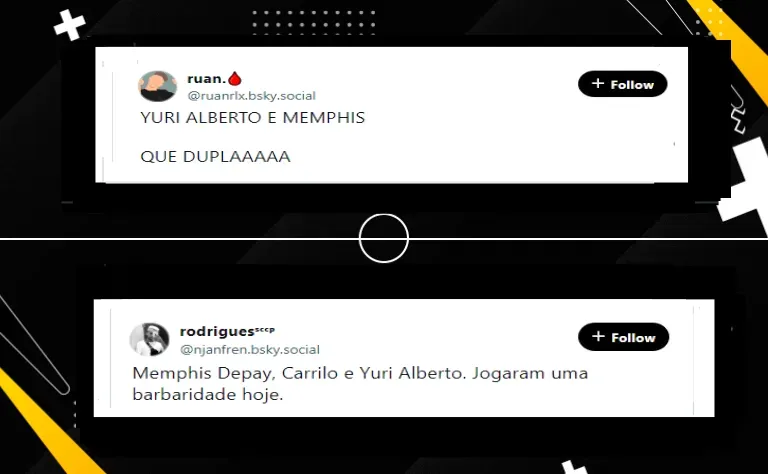 Outro torcedor acabou indo na mesma linha: “Coisas positivas pra hoje: Memphis e Yuri deu muito certo”, afirmou outro. Agora, resta ver se a dupla terá sequência juntos e se poderão ajudar a equipe neste momento complicado.