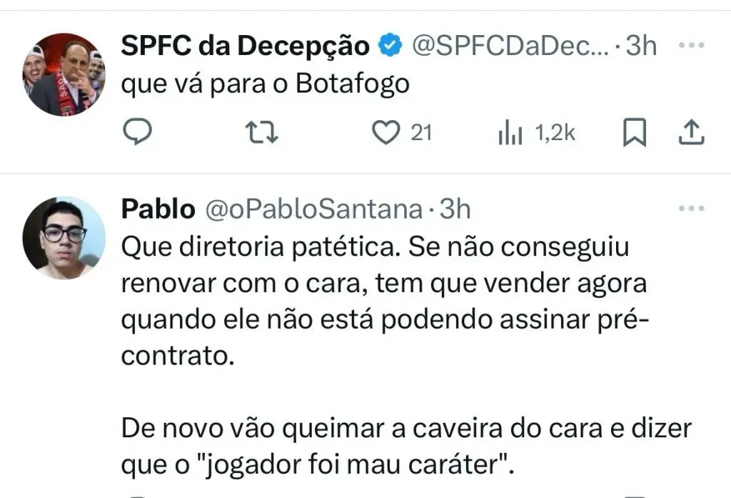 “O São Paulo já fez várias propostas e eles estão conversando. Não é fácil, mas mesmo nessa situação ele vai para dentro do campo e dá a vida, luta pra caramba, briga o tempo todo, porque o que interessa para a gente é isso. Esse veste a camisa também. Ele deixa com os empresários dele, não se esconde. Claro que a gente queria que ele assinasse o contrato já, mas está um pouco difícil”, concluiu.