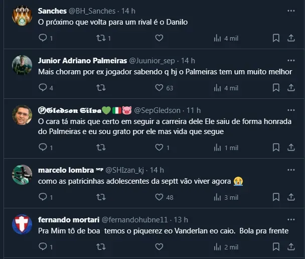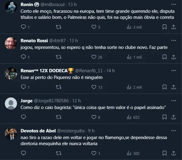 Dito isso, com a notícia da contratação de Viña encaminhada pelo Flamengo, o tema repercutiu entre palestrinos e a divisão de opiniões foi clara. De qualquer forma, ele deve passar a ser rival do Verdão.