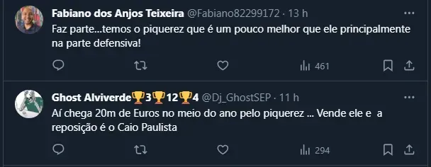 Posto isso, vale destacar que o negócio envolvendo Caio Paulista custou pouco mais de R$ 15 milhões aos cofres palmeirenses. Aliás, muitos torcedores ficaram preocupados com a possibilidade de saída de Piquerez.