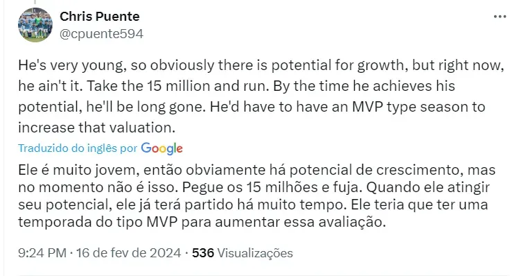 Esse atleta pode ser o ainda jovem Talles Magno, de 21 anos de idade, cria do Vasco e atualmente nos Estados Unidos. O Atlético-MG estava de olho no jogador, mas o interesse esfriou nos últimos dias.