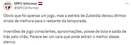 Com Carpini, a pressão era grande por resultados e o desempenho em campo não era tão visto pela diretoria, por exemplo. É verdade que é apenas o primeiro jogo de Zubeldía, mas já dá para perceber que mudanças positivas acontecerão e que essa pode ser a virada de chave para o time.