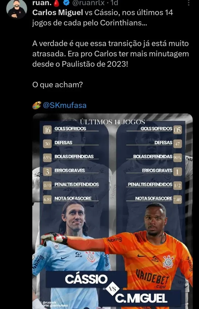 Inclusive, para alguns, o gigante de mais de dois metros já deveria ser titular da posição, tendo em vista algumas falhas recentes do ídolo corinthiano.