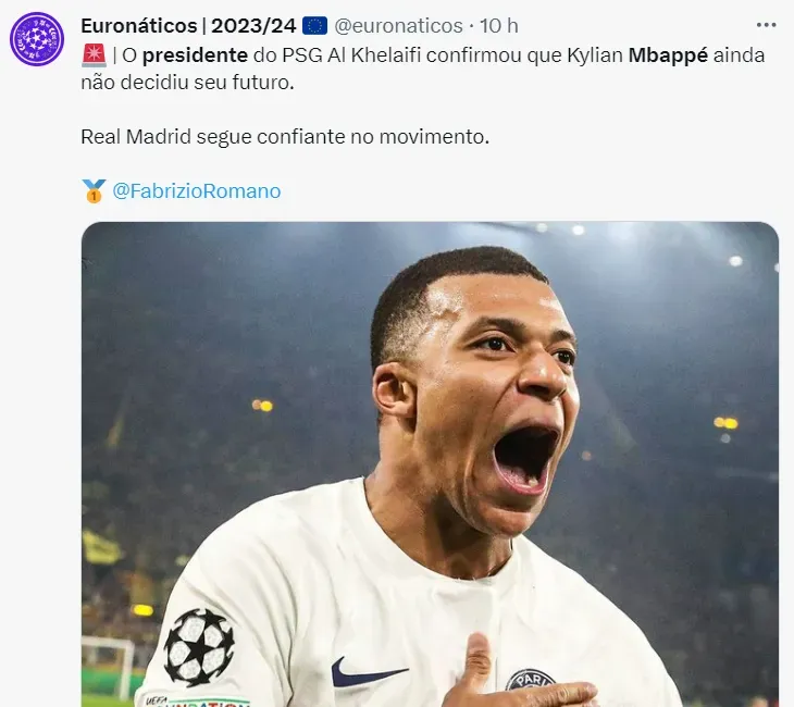Mbappé deverá renovar com o PSG, assim como foi em 2022, quando ele surpreendeu a todos e aumentou seu vínculo com o clube francês. Dificilmente o Real Madrid irá aceitar os moldes que exige o atleta.