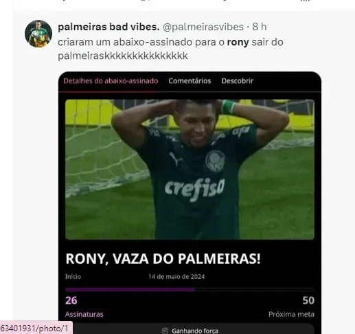 Antes da entrevista e especulações, a torcida do Palmeiras está insatisfeito com o desempenho de Rony. Antes das especulações e entrevista cedida a André Hernan, o torcedor já questionava a presença do atacante no elenco palmeirense.