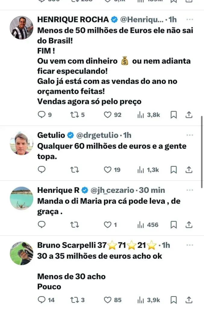 A próxima janela europeia abre no dia 02/07 e permanece assim até o dia 01/08. Em relação a valores, o Clube português pensa em fazer uma proposta na casa dos 20 milhões de euros pelo camisa 10 do Galo.