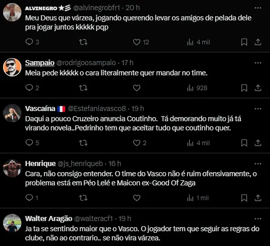 A atuação da Cria da Colina dividiu os torcedores na web. Muitos acabaram declarando que ele cairia muito bem no atual time de Álvaro Pacheco e que ele está fazendo muita falta para o time.