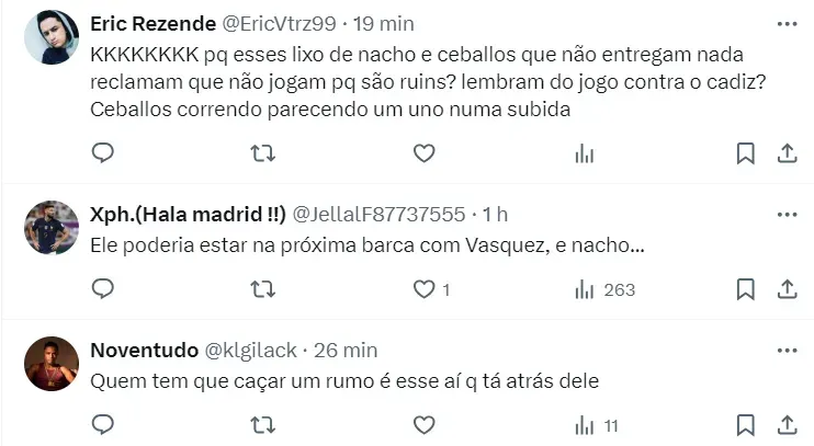 Ceballos é reserva de Bellingham, Valverde e Tchouaméni, além de correr atrás de Modric e Kroos, dois grandes importantes nomes do treinador italiano. Para piorar a situação do jogador, o clube merengue busca novos meias no mercado.