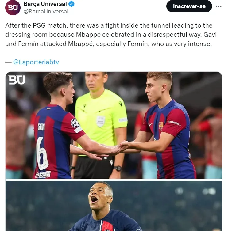 De acordo com a matéria, houve uma briga no túnel do vestiário porque Mbappé comemorou de forma desrespeitosa. Gavi e Fermín não gostaram e foram pra cima do jogador, principalmente Fermín, o mais intenso entre eles. A fonte não entra em maiores informações sobre a confusão após a partida.