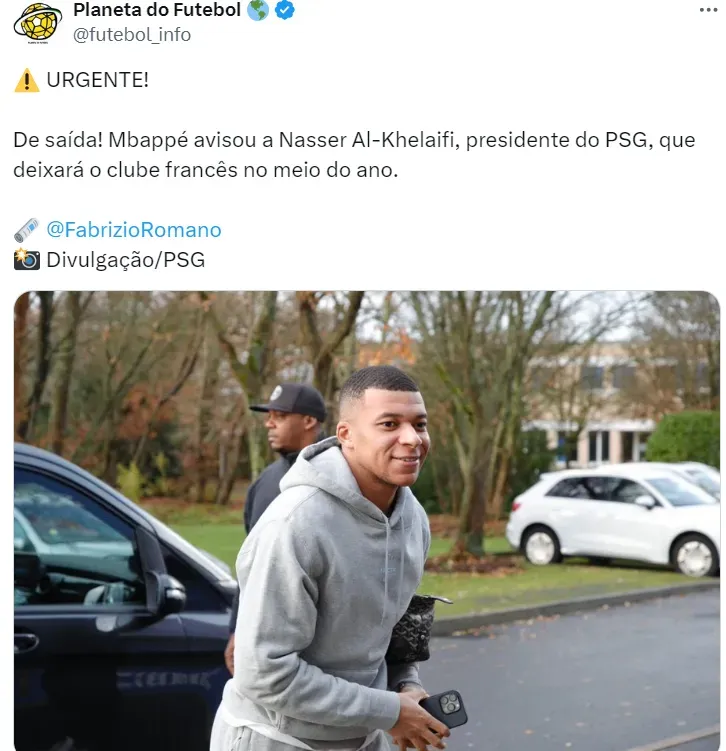 É quase certo a ida do astro Mbappé para o Real Madrid, depois do jornalista Fabrizio Romano noticiar que o camisa 7 decidiu deixar o PSG no final da temporada.