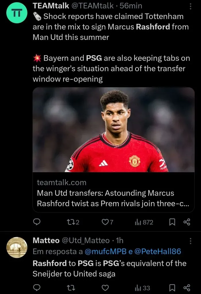 Ainda assim, o negócio não será barato, já que, além de ter contrato até 2028, Rashford é avaliado em mais de 100 milhões de libras.