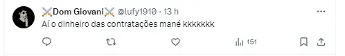 Conforme o que foi trazido pelo setorista do Timão, uma proposta para um novo patrocínio master chegou à nova gestão do Corinthians e os valores seriam excelentes. Conforme publicação do perfil no X Time do Povo, que relatou as informações de Samir, a Pixbet teria feito uma proposta de R$ 100 milhões pelo patrocínio master do Timão.