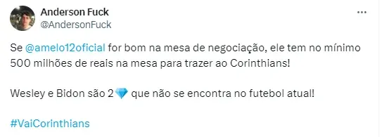 A direção avalia que sentaria para conversar se chegasse uma proposta de 50 milhões de euros (R$ 271,9 milhões). Vale ressaltar que ele é hoje titular absoluto do time e faz parte dos planos do treinador corinthiano.