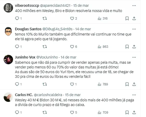 “O Corinthians tem 90% dos direitos econômicos do Wesley, mas não há uma proposta oficial. O que me falaram é que vai chegar uma proposta no meio do ano do Real Betis. Isso chegou por meio dos procuradores dele. Essa procura ocorreu há poucas semanas”, disse em seu canal no YouTube.