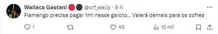 Por se tratar de empréstimo, o Flamengo deve ser comunicado em breve para saber se possui interesse em comprar o atleta de 19 anos. A informação foi publicada pelo jornalista Venê Casagrande.