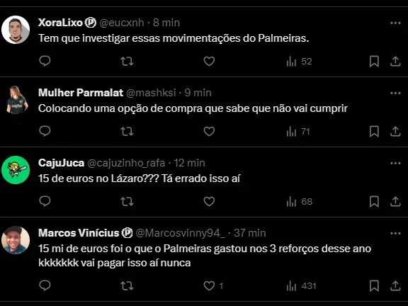 “A ideia do Palmeiras é contar com Lázaro até o final da temporada, com uma opção de compra estipulada em contrato de cerca de 15 milhões de euros (cerca de R$ 80 milhões)”, destaca o Globo Esporte.