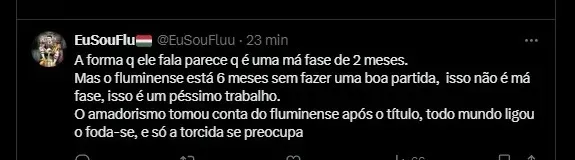 O perfil Eu sou Flu também comentou o momento negativo do tricolor com Fernando Diniz: