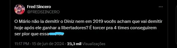 O Torcedor Rafael Lizarda comentou na rede social X