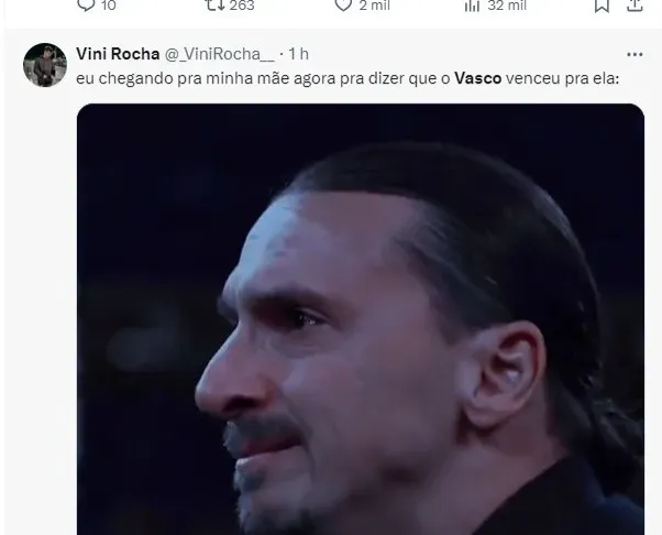 “Eu chegando pra minha mãe agora pra dizer que o Vasco venceu para ela “, disse Vini Rocha na rede X