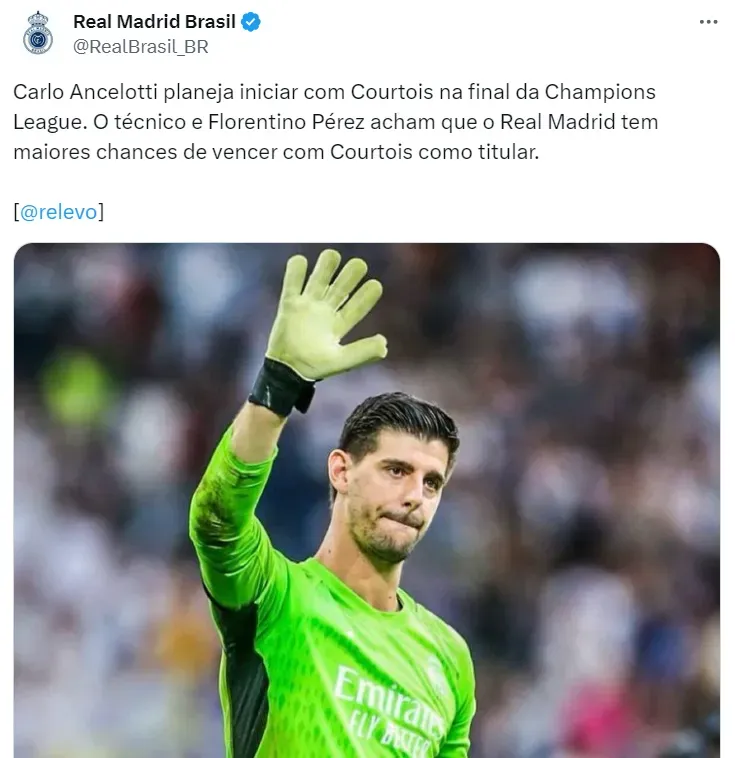 Carlo Ancelotti tem seu goleiro preferido para começar a grande final entre Real Madrid e Borussia Dortmund, que irão fazer a final da Champions League da temporada 2023-24, em Wembley, na Inglaterra.