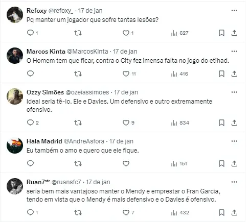 Entretanto, a concorrência pode atrapalhar o Clube. A situação indefinida atraiu o interesse de outros mercados em Mendy, como a Premier League e o Mundo Árabe. Além disso, o Marca apontou que seria “estranho” a diretoria manter o francês e também contratar Davies, do Bayern de Munique, que estaria na mira.