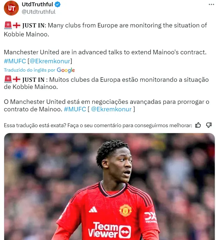 Avaliado em 35 milhões de euros, Mainoo tem contrato com o Man United válido até o ano de 2027. Dentro do clube, os dirigentes não desejam perdê-lo de forma alguma.