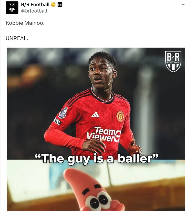 No último jogo do Man United, Mainoo foi um dos destaques do time vermelho, no clássico de maior importância da Inglaterra, contra o Liverpool. O jovem marcou um lindo gol.