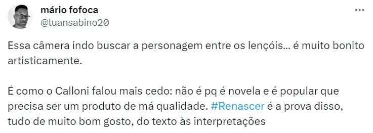 Renascer, assim como Pantanal, foi escrita por ninguém menos que Benedito Ruy Barbosa, avô de Bruno: “Renascer pisa em um Brasil mais profundo de forma mais potente. Assim como Pantanal, são obras épicas”.