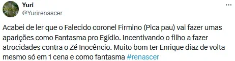 Com isso, o marido de Mariana (Theresa Fonseca) vai declarar guerra contra Egídio e o clima ficará tenso nos próximos capítulos de Renascer.