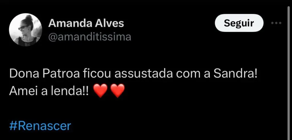 Nos próximos capítulos de Renascer, Sandra (Giullia Buscacio) tentará fazer com que sua mãe, Dona Patroa (Camila Morgado), abra os olhos sobre as questões envolvendo os abusos sexuais de Egídio (Vladimir Brichta) contra Joaninha (Alice Carvalho). A filha do casal ainda tentará evitar que o pai continue com os assédios contra a moça, a fim de evitar algo pior.