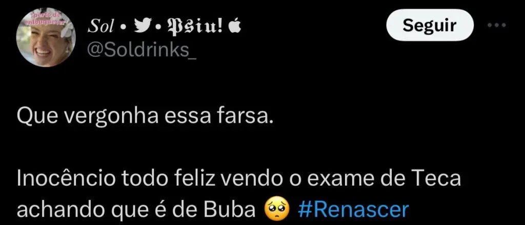 Buba (Gabriela Medeiros) não está feliz com toda palhaçada envolvendo a adoção do filho que Teca (Livia Silva) espera em Renascer.