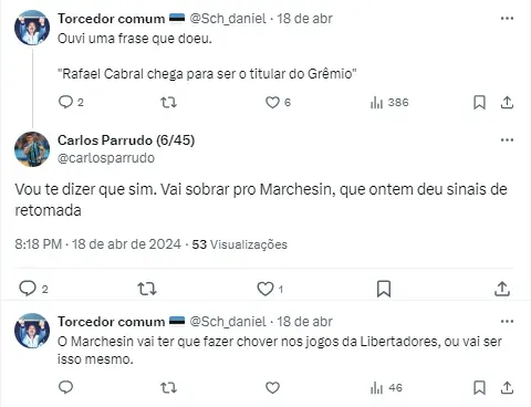 “Minha passagem no Cruzeiro foi espetacular, fomos para a Série A e nos mantemos, fomos para a Sul-Americana. Eu queria um desafio maior, brigar por coisas maiores. Tive quatro propostas, mas a prioridade era o Grêmio“, acrescentou Rafael Cabral, que irá disputar posição com Marchesín e Caíque.