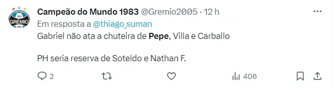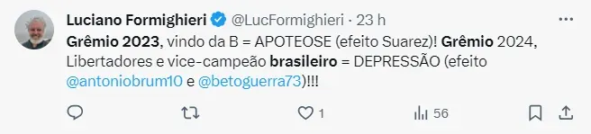 No entanto, apesar da polêmica, Pepê ressaltou que é preciso olhar com otimismo a campanha feita pelo Grêmio no Brasileirão 2023. O Grêmio havia acabado de chegar da segunda divisão e era visto com desconfiança pelos demais clubes e até a torcida.