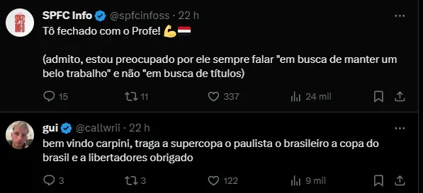 Entretanto, no acordo fechado pela equipe e treinador, caso o São Paulo conquiste algum título na temporada de 2024, o vínculo de Thiago Carpini será automaticamente renovado.